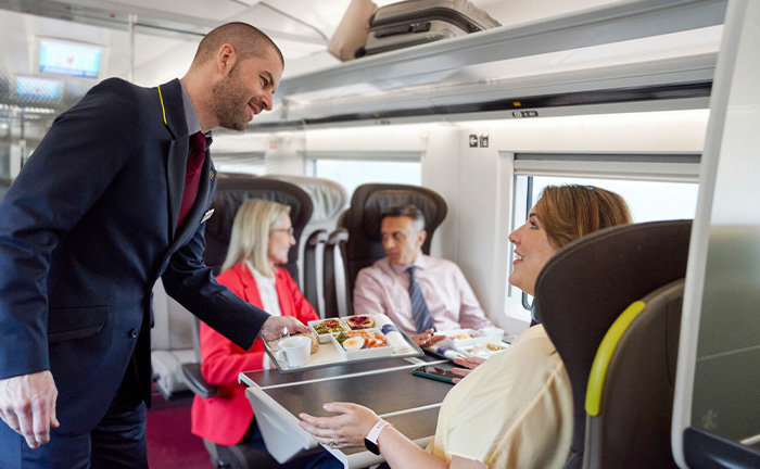 The on-board Eurostar Café offers a wide array of snacks and drinks (to take away or enjoy on the spot). On Eurostar trains between Belgium, the Netherlands, Germany and France, you can also buy tickets there for public transport in Paris, the Netherlands, Aachen, Cologne and Brussels.